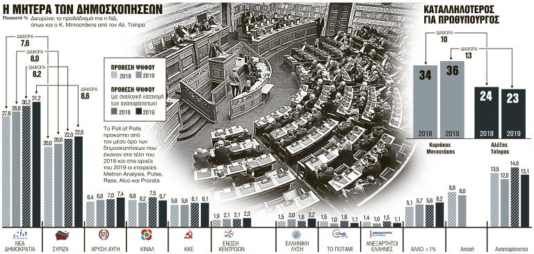 Συγκεκριμένα «ΤΑ ΝΕΑ» επεξεργάστηκαν τις δημοσκοπικές προβλέψεις πέντε εταιρειών (Metron Analysis, Pulse, Rass, Alco και Prorata) και συνέκρινε τις δημοσιευθείσες έρευνές τους το φθινόπωρο του 2018 με τις πιο πρόσφατες που είδαν το φως της δημοσιότητας στους πρώτους μήνες του 2019.