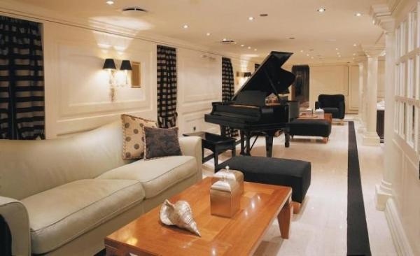 Το εσωτερικό της θαλαμηγού είναι βαμμένο σε απαλούς τόνους με μόνη εξαίρεση την εντυπωσιακή κυκλική σκάλα.