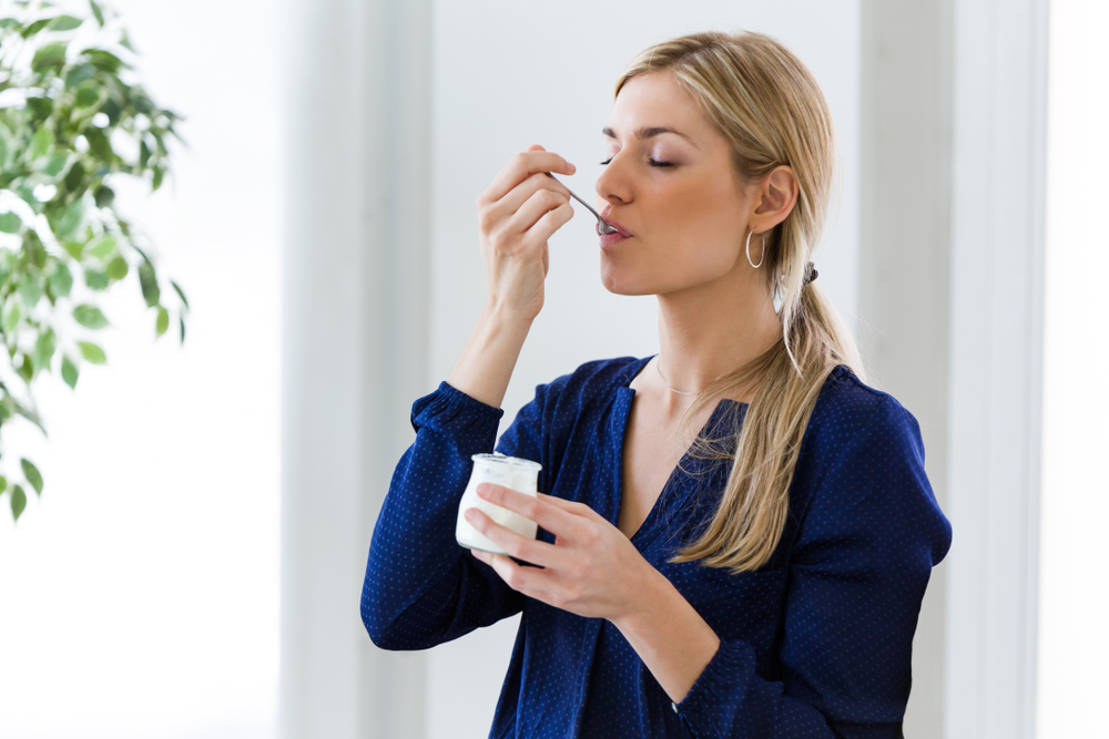 Για περίπου 100 έως 150 θερμίδες, παίρνετε τις χαλαρωτικές δυνάμεις της τρυπτοφάνης από τα γαλακτοκομικά προϊόντα, καθώς και ικανοποιητική πρωτεΐνη. Επιπλέον, το γιαούρτι μπορεί να σας βοηθήσει να ηρεμήσετε το στομάχι σας, οπότε είναι λιγότερο πιθανό να ξυπνήσετε με καούρα ή δυσπεψία.