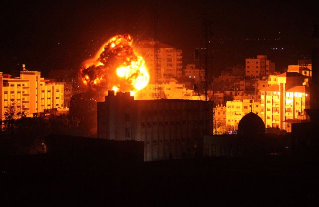 Οι ισραηλινές ένοπλες δυνάμεις σφυροκόπησαν στρατιωτικές αλλά και πολιτικές εγκαταστάσεις της Χαμάς στον θύλακα, σε αντίποινα για το πλήγμα ρουκέτας που κατέστρεψε οίκημα στο κεντρικό Ισραήλ, τραυματίζοντας επτά ανθρώπους.