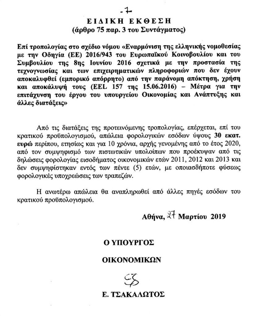 Το ζήτημα είχε τεθεί από τις τράπεζες κατά την έναρξη των διαπραγματεύσεων για το πλαίσιο προστασίας της πρώτης κατοικίας και με την τροπολογία ικανοποιείται πλήρως. Οπως αναφέρεται με την τροπολογία επέρχεται απώλεια φορολογικών εσόδων ύψους περίπου 30 εκατ. ευρώ το χρόνο και για δέκα χρόνια αρχής γενομένης από το έτος 2020.