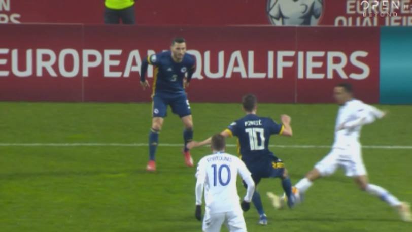 Στο 64ο λεπτό, ο Κώστας Φορτούνης μείωσε σε 2-1 για την Εθνική κόντρα στη Βοσνία και ένα λεπτό αργότερα οι Βόσνιοι έμειναν με 10 παίκτες.