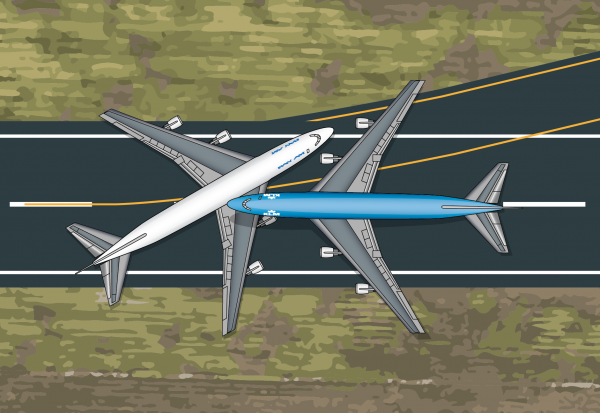 Το Boeing της KLM άρχισε να τροχοδρομεί και να ανεβάζει ταχύτητα, προκειμένου να απογειωθεί. O πιλότος της Pan-Am προσπάθησε να μετακινήσει το αεροσκάφος του το οποίο ήταν σταματημένο καταμεσής του διαδρόμου, αλλά ήταν αργά.
