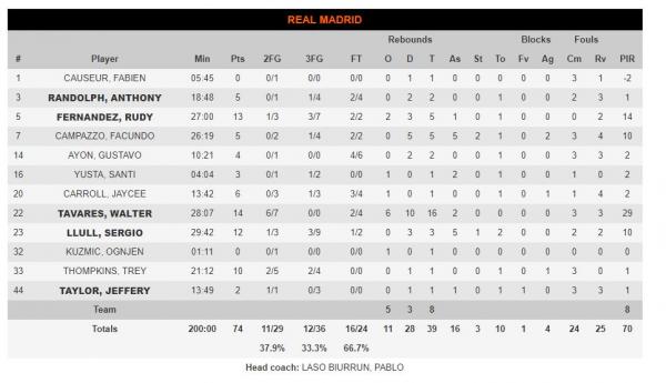 Aπό τους Μαδριλένους οι Ταβάρες (14π. 16ρ.), Φερνάντεθ (13π.) και Γιούλ (12π.) ήταν οι καλύτεροι, ενώ σημαντική ήταν η προσφορά του Καμπάτσο (5π.5ρ., 5ας).