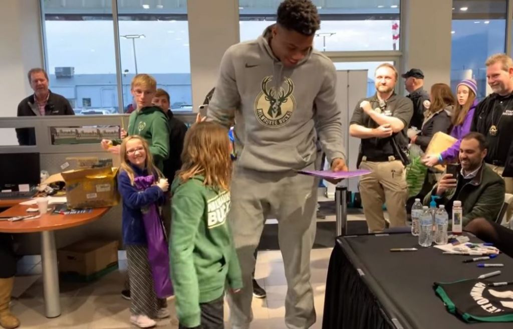 Ο Γιάννης Αντετοκούνμπο -που θέλει να κάνει πάντα χαρούμενους τους θαυμαστές του- πρωταγωνίστησε σε μία συγκινητική σκηνή στη διάρκεια μίας εκδήλωσης κατά την οποία υπέγραφε αυτόγραφα και φανέλες.