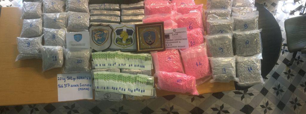 Από τη Λιμενική Αρχή Ρόδου που διενεργεί την προανάκριση, κατασχέθηκαν τα 20,501 κιλά κοκαΐνης και τα περίπου 166.317 δισκία ECSTASY, το χρηματικό ποσό των 8.100 ευρώ, δύο συσκευές κινητής τηλεφωνίας, μία συσκευή GPS καθώς επίσης και το Ι.Χ.όχημα ως μέσο μεταφοράς των ανωτέρω ναρκωτικών ουσιών.