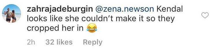 Από την άλλη πλευρά και η Κένταλ Τζένερ, έτσι όπως έχει ξαπλώσει στα πόδια της αδελφής της, Κάιλι, μοιάζει σα να μην ήταν παρούσα κατά τη φωτογράφηση και απλά την πρόσθεσαν μετά με Photoshop. Μάλιστα, αυτό το σχολίασαν οι περισσότεροι από τους χρήστες, που δε μπορούσαν να συγκρατήσουν τα γέλια τους με το αποτέλεσμα.