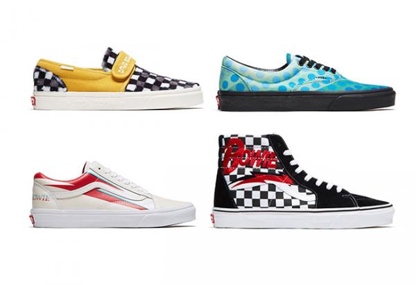 Μετά την επιτυχία της κυκλοφορίας παπουτσιών εμπνευσμένη από το συγκρότημα Led Zeppelin ήταν φυσικό επόμενο να θελήσουν να αποτίσουν φόρο τιμής στον εκρηκτικό καλλιτέχνη Ντέιβιντ Μπόουι. Τέσσερα νέα αθλητικά παπούτσια, συγκεκριμένα τα μοντέλα Vans ‘Slip-On 47 V DX, Era, Old Skool και Sk8-Hi, θα μετατραπούν σε Space Oddity, Hunky Dory, Ziggy Stardust και Aladdin Sane με faux γούνα και κίτρινο σουέτ, πουά μοτίβα, τον κλασικό κόκκινο και μπλε κεραυνό decal, και πολλά άλλα.