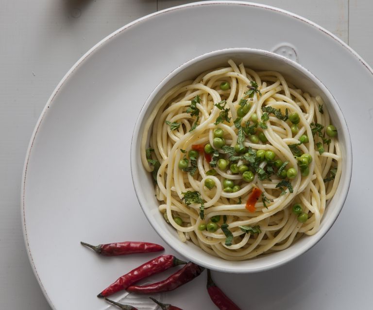 Σπαγκέτι με αρακά, δυόσμο και τσίλι