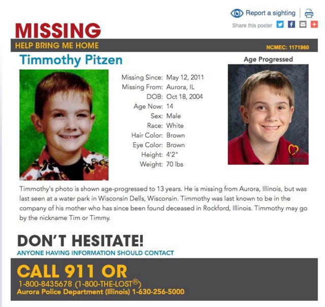 Ο πραγματικός Τίμοθι Πίτζεν αγνοείται από το 2011, όταν ήταν μόλις 6 ετών.