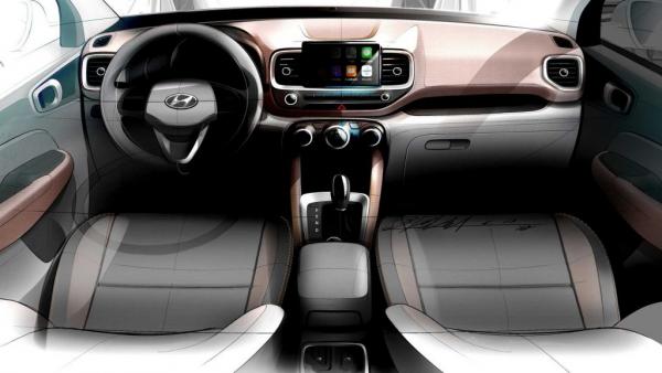 Παράλληλα, όπως αφήνουν να εννοηθεί τα πρώτα σκίτσα από το εσωτερικό του η Hyundai έχει καταβάλλει αξιέπαινες προσπάθειες να το διαχωρίσει από το Kona, προσθέτοντας ένα επιπλέον ανοιχτό χώρο αποθήκευσης στη δεξιά πλευρά του ταμπλό ενώ αναβαθμισμένη προδιαγράφεται και η σχεδίαση της κεντρικής κονσόλας όπου εκτός από μια βελτιωμένη σχεδιαστικά εκδοχή της οθόνης του infotainment, το Venue δείχνει να διαθέτει και μια πιο εξορθολογισμένη αισθητική σε ό,τι αφορά τον καταμερισμό των διακοπτών.
