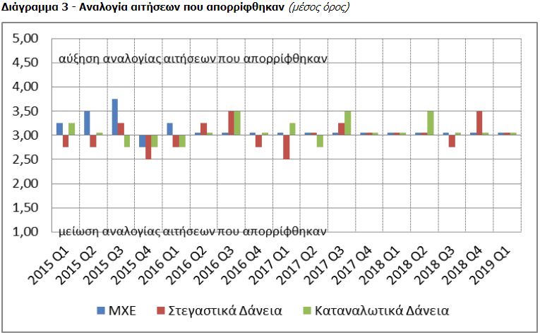 Η αναλογία των αιτήσεων για δάνεια προς νοικοκυριά που απορρίφθηκαν παρέμεινε αμετάβλητη σε σχέση με το προηγούμενο τρίμηνο.