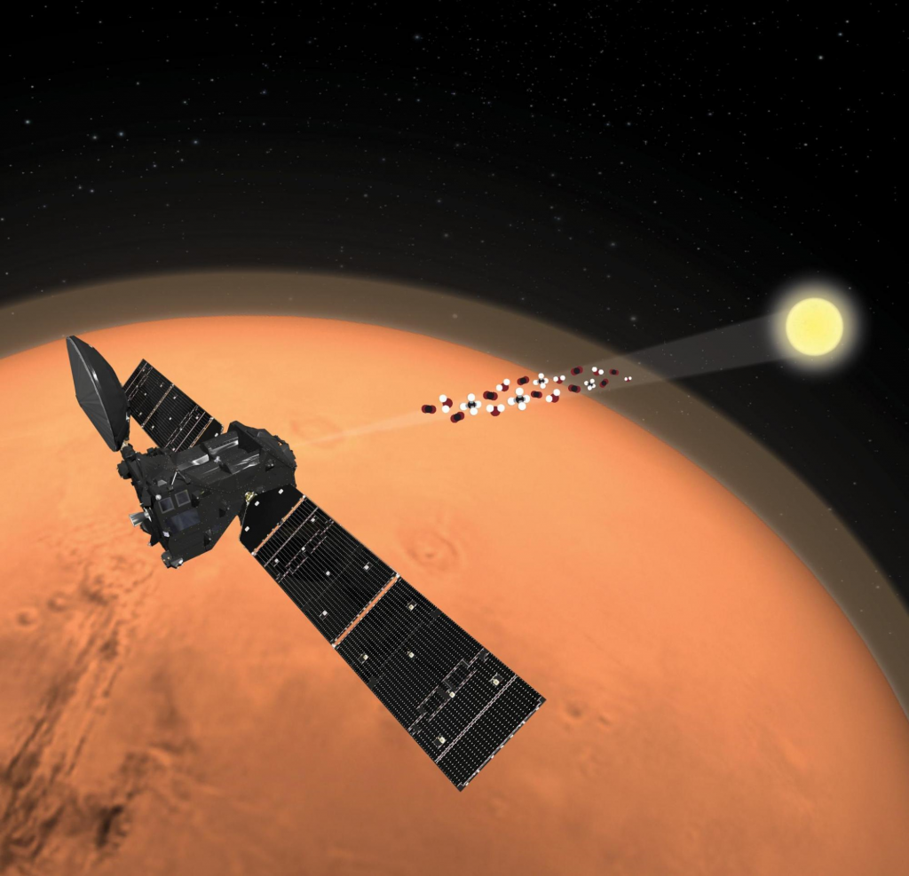 To σκάφος TGO, στο πλαίσιο της κοινής αποστολής ExoMars του Ευρωπαϊκού Οργανισμού Διαστήματος (ESA) και της ρωσικής διαστημικής υπηρεσίας Roscosmos, έφθασε στον Άρη τον Οκτώβριο του 2016 και τέθηκε σε τροχιά γύρω του, σε απόσταση 400 χιλιομέτρων πάνω από την επιφάνεια του. Η κυρίως επιστημονική λειτουργία του άρχισε πέρυσι τον Απρίλιο, με δύο όργανα που κάνουν μετρήσεις αερίων στην αρειανή ατμόσφαιρα.