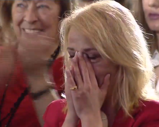 Η περιφερειάρχης δεν μπόρεσε να συγκρατήσει τα δάκρυά της κατά τη διάρκεια της ομιλίας του πρωθυπουργού.
