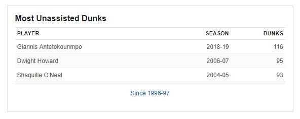 Συν τοις άλλοις ο Γιάννης κατατάσσεται δεύτερος στην συλλογή αμυντικών «σκουπιδιών» και τρίτος καλύτερος στο defensive rating, μεταξύ όσων έχουν παίξει σε τουλάχιστον 50 ματς και μέσο όρο 20′ συμμετοχής. Παράλληλα, μαζί με τον Κόβινγκτον των Σίξερς είναι οι μόνοι παίκτες στα «φτερά» στο Top 20 του defensive real plus minus.