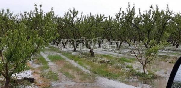 Στην Ημαθία, η χαλαζόπτωση που έπληξε την περιοχή προκάλεσε εκτεταμένες ζημιές σε αγροτικές καλλιέργειες.