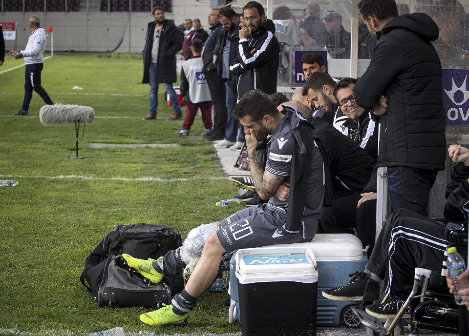 Ο Αντελίνο Βιεϊρίνια αποχώρησε με πατερίτσες από το γήπεδο της Λάρισας, αφού αισθανόταν έντονους πόνους στο γόνατο και δεν μπορούσε να πατήσει καλά το πόδι του. Σύμφωνα με την πρώτη εκτίμηση του ιατρικού επιτελείου των Ασπρόμαυρων, να κάνει λόγο για κάκωση στο γόνατο.