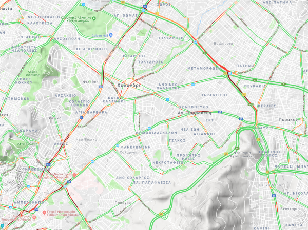 Σημειωτόν πάνε τα αυτοκίνητα στην Αττική Οδό στο ρεύμα προς Ελευσίνα, από Γέρακα ως Κηφισίας, καθώς το πρωί της Δευτέρας σημειώθηκε τροχαίο ατύχημα κοντά στον κόμβο Κηφισίας.