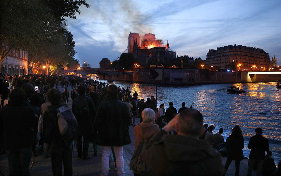 Κάποιοι κλαίνε, άλλοι προσεύχονται: εκατοντάδες τουρίστες και Παριζιάνοι, αποσβολωμένοι, σοκαρισμένοι, παρακολουθούν τις φλόγες να «καταπίνουν» την Παναγία των Παρισίων.