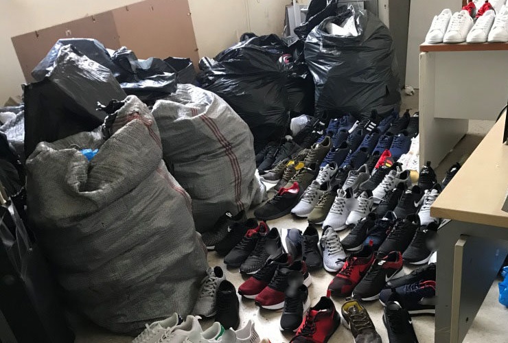 Η αστυνομία βρήκε και κατάσχεσε πάνω από 500 ζευγάρια αθλητικών υποδημάτων.