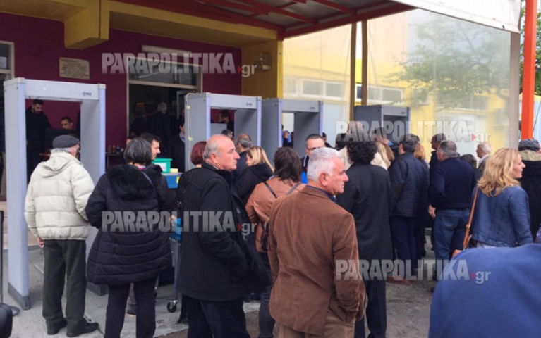 Όσοι παρευρέθηκαν στην ομιλία του πρωθυπουργού υποχρεώθηκαν να περάσουν από τα μηχανήματα για να εισέλθουν στο χώρο της εκδήλωσης.