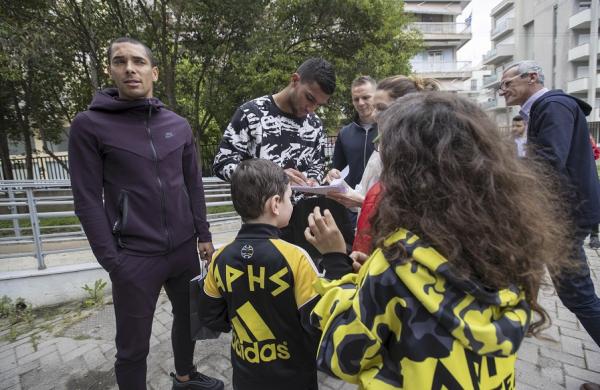 Όπως ήταν αναμενόμενο οι ποδοσφαιριστές των κίτρινων έγινε δεκτοί με ενθουσιασμό από τα παιδιά, στα οποία μοίρασαν αυτόγραφα και βγήκαν πολλές φωτογραφίες μαζί.