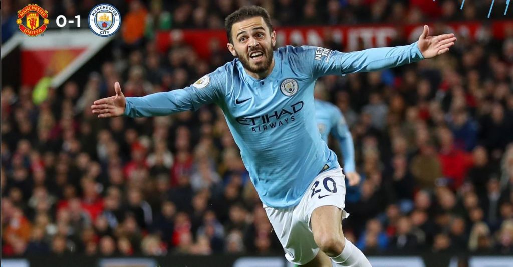 Ούτε το «Ολντ Τράφορντ» στάθηκε ικανό να «φρενάρει» την πορεία της Σίτι προς τον τίτλο. Με γκολ των Σίλβα (54') και Σανέ (66') η ομάδα του Γκουαρδιόλα νίκησε με 2-0 στο ντέρμπι του Μάντσεστερ και προσπέρασε τη Λίβερπουλ (89 βαθμοί έναντι 88) «αγκαλιάζοντας» ουσιαστικά το πρωτάθλημα.