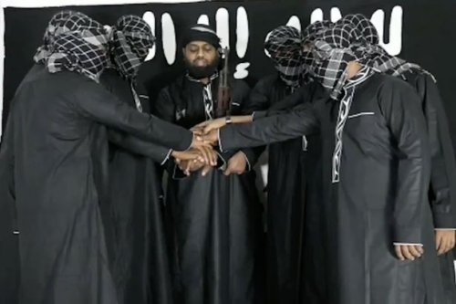 Σε φωτογραφία που δόθηκε μαζί με την ανακοίνωση, η αυθεντικότητα της οποίας δεν είναι δυνατόν να επαληθευτεί από ανεξάρτητη πηγή, εικονίζονται οκτώ άνδρες, εκ των οποίων οι επτά έχουν καλυμμένα τα πρόσωπά τους. Ποζάρουν με την μαύρη σημαία του ΙΚ στο φόντο. Οι τρεις από τους μασκοφόρους κρατούν μαχαίρια, ενώ ο μοναδικός που έχει ακάλυπτο το πρόσωπο κρατάει ένα πολυβόλο.