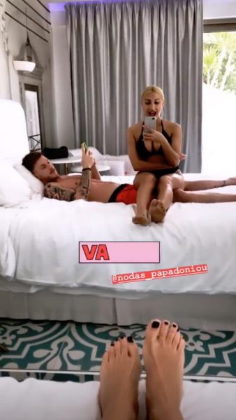 Μέσω Instagram η ίδια και ο σύντροφος της πληροφορούν τους ακόλουθους τους που βρίσκονται, το τρώνε και τις βουτιές τους στην πισίνα τους ξενοδοχείου. Ανάμεσα στις λήψεις το όμορφο ζευγάρι πόζαρε και στο κρεβάτι!