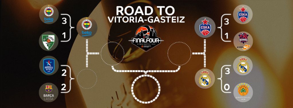 Τώρα όσον αφορά τις διασταυρώσεις του final-4 έχουμε γνωστό το πρώτο ζευγάρι το οποίο είναι το Ρεάλ Μαδρίτης – ΤΣΣΚΑ Μόσχας, με τη Φενέρμπαχτσε να περιμένει τον αντίπαλό της από τον τελευταίο προημιτελικό που εκκρεμεί. Δηλαδή αντίπαλός της θα είμαι μία εκ των Εφές ή Μπαρτσελόνα.