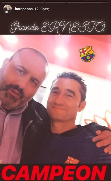 Συγκεκριμένα, ο Διευθυντής Επικοινωνίας της ΠΑΕ Ολυμπιακός ανέβασε στον προσωπικό του λογαριασμό στα social media μια φωτογραφία του με τον Βαλβέρδε από το παιχνίδι των δύο ομάδων στο Γ. Καραϊσκάκης και τη συνόδευσε με το παρακάτω μήνυμα. «Μεγάλε Ερνέστο, πρωταθλητή»!