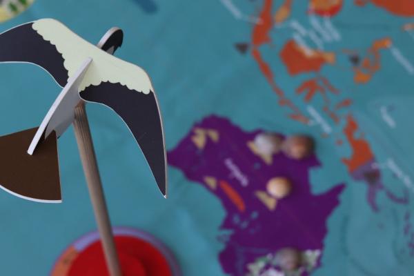 Πρόκειται για ένα παγκόσμιο χάρτη διαστάσεων 3,5χ3 μέτρα, πάνω στον οποίο τα παιδιά κινούνται. Μέσα από το παιχνίδι «ταξιδεύουν» σε άλλους πολιτισμούς, σε όλες τις ηπείρους. Τα παιδιά χωρίζονται σε δύο ή τρεις ομάδες, κάθε μία από τις οποίες έχει ένα πιόνι με τη μορφή ενός πτηνού, του πρώτου ταξιδευτή.