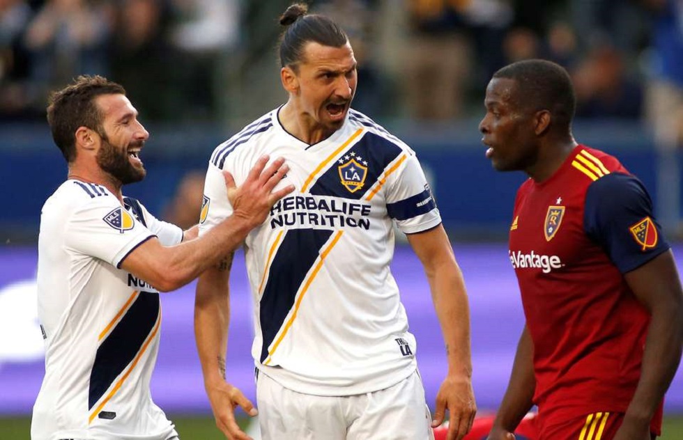 Ο Ζλάταν Ιμπραΐμοβιτς κατάφερε να βρει δίχτυα κόντρα στη Real Salt Lake και ακολούθως αποφάσισε να το πανηγυρίσει με προκλητικό τρόπο μπροστά από τον αντίπαλό του, Νεντούμ Ονουόχα.