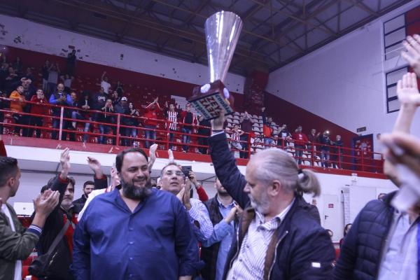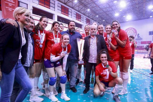 Στο κλειστό Μελίνα Μερκούρη του Ρέντη, οι Ερυθρόλευκες μαζί με τον κόσμο τους στις κερκίδες και υπό το βλέμμα των Βαγγέλη Μαρινάκη και Μιχάλη Κουντούρη, ολοκλήρωσαν τη χρονιά με απόλυτη επιτυχία σηκώνοντας το βαρύτιμο τρόπαιο!