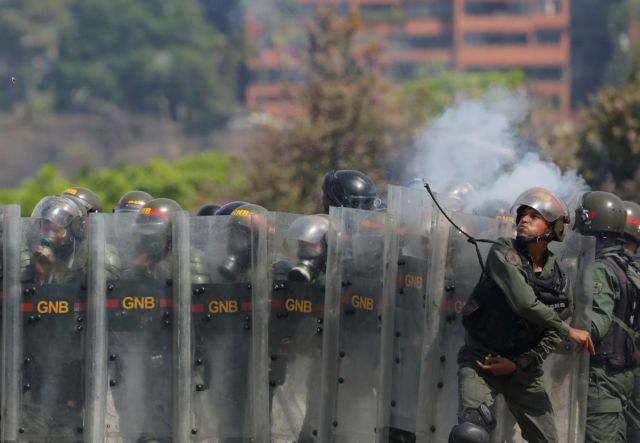 Σε πεδίο μάχης μετατράπηκε το Καράκας, με υποστηρικτές του Χουάν Γκουαϊδό να συγκρούονται με δυνάμεις της Μπολιβαριανής Εθνικής Φρουράς, ενός παραστρατιωτικού σώματος που είναι επιφορτισμένο με την τήρηση της τάξης, σύμφωνα με πληροφορίες δημοσιογράφου του AFP.