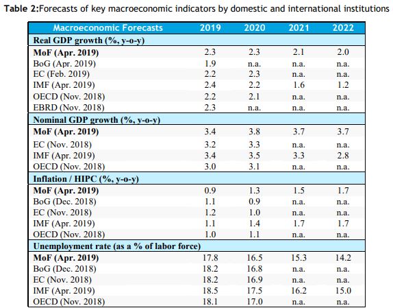 Σημειώνεται ότι οι μακροοικονομικές αυτές προβλέψεις αποτελούν τη βάση πάνω στην οποία στηρίζονται τόσο το Εθνικό Πρόγραμμα Μεταρρυθμίσεων όσο και το Αναθεωρημένο Πρόγραμμα Σταθερότητας.