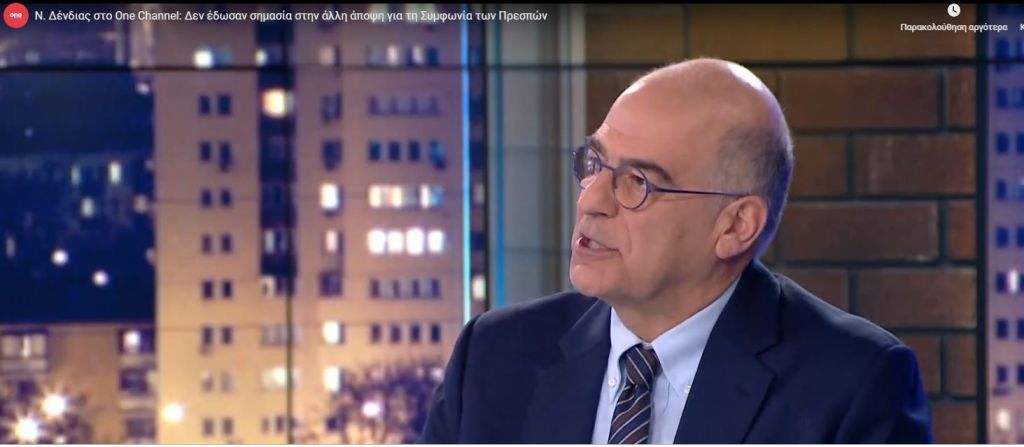 Ν. Δένδιας στο One Channel: Δεν έδωσαν σημασία στην άλλη άποψη για τη Συμφωνία των Πρεσπών