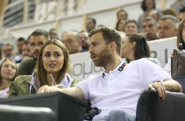 Οι δύο παίκτες στέκονται δίπλα στον Γιούρι Φιλίποφ και τους Ασπρόμαυρους αθλητές, στηρίζοντας έμπρακτα την ομάδα βόλεϊ του συλλόγου, η οποία θέλει πάση θυσία τη νίκη για να ισοφαρίσει σε 1-1 τη σειρά των τελικών με τους Ερυθρόλευκους.