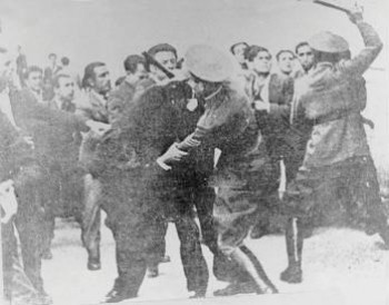 Στις 10:30 το πρωί στη διασταύρωση των οδών Βενιζέλου και Εγνατίας έπεσε ο πρώτος νεκρός, ο νεαρός αυτοκινητιστής Τάσος Τούσης. Ο θρήνος της μητέρας του πάνω στο πτώμα του γιου της, που καταγράφηκε φωτογραφικά ενέπνευσε το Γιάννη Ρίτσο στον «Επιτάφιο».