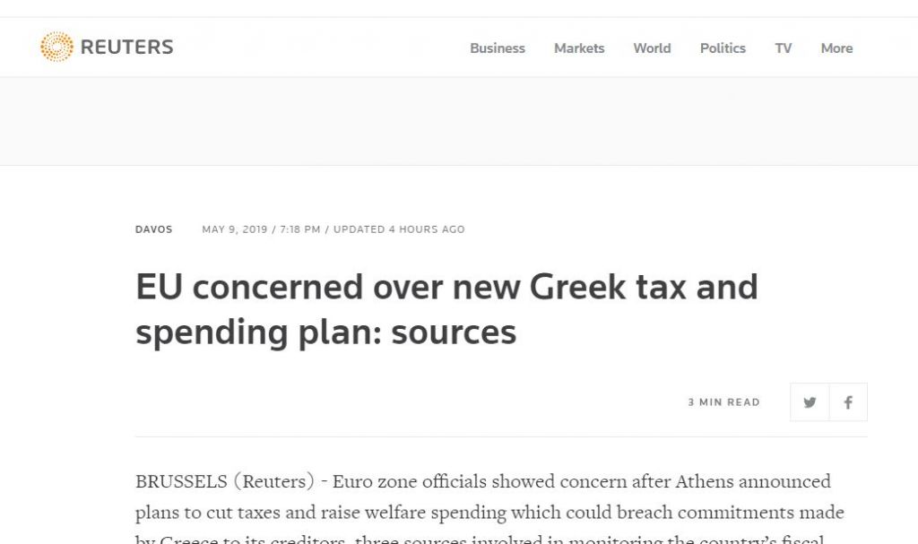 Reuters : Η ΕΕ ανησυχεί για το πακέτο θετικών μέτρων