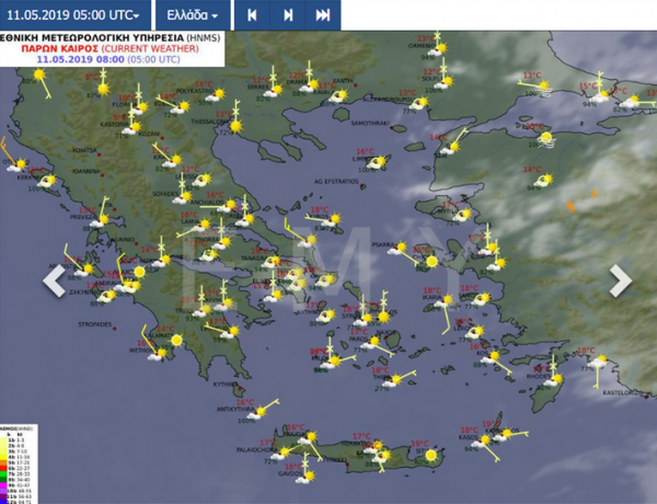 Ζέστη με συννεφιά και μικρά διαστήματα ηλιοφάνειας θα επικρατήσει σήμερα, Σάββατο 11 Μαΐου, σε όλη τη χώρα. Όμως, σύμφωνα με έκτακτο δελτίο επιδείνωσης καιρού που εξέδωσε η ΕΜΥ, από αργά το βράδυ της Κυριακής θα σημειωθεί σημαντική μεταβολή του καιρού, που θα ξεκινήσει από τα βορειοδυτικά και σταδιακά θα επεκταθεί και σε άλλες περιοχές της Ελλάδας.
