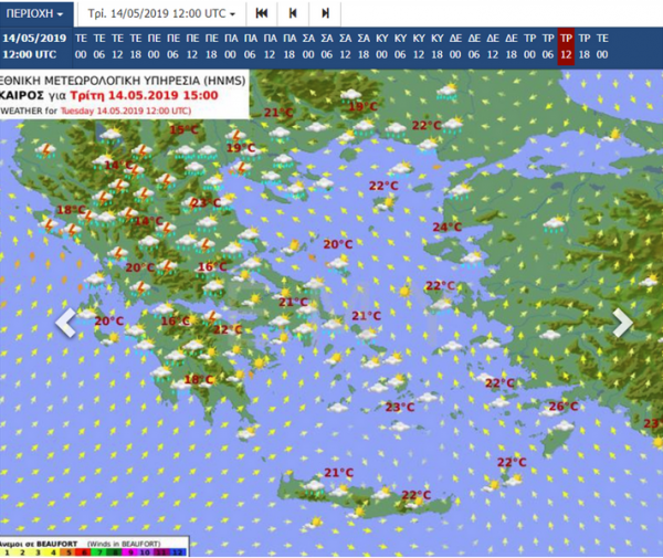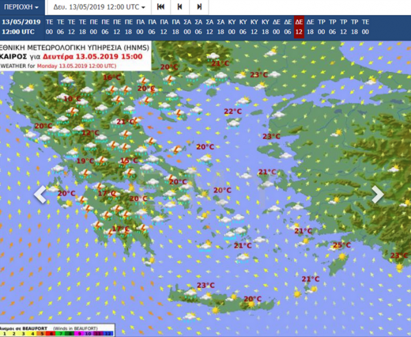 Στα δυτικά, τα κεντρικά και τα βόρεια νεφώσεις παροδικά αυξημένες με τοπικές βροχές και σποραδικές καταιγίδες, πιθανώς κατά τόπους ισχυρές κυρίως την Τρίτη στα βόρεια. Στα υπόλοιπα άστατος κατά περιόδους νεφελώδης με τοπικές βροχές ή μεμονωμένες καταιγίδες, αλλά και διαστήματα ηλιοφάνειας. Οι άνεμοι θα πνέουν από νότιες διευθύνσεις 4 με 6 μποφόρ. Η θερμοκρασία θα σημειώσει μικρή άνοδο την Τετάρτη.