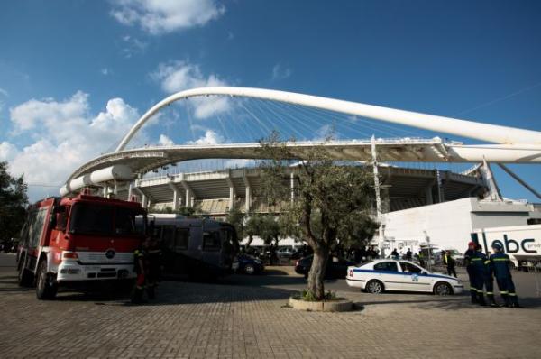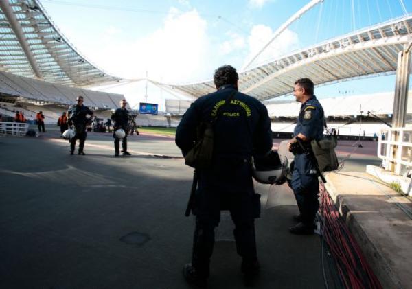 Δρακόντεια μέτρα ασφαλείας στο ΟΑΚΑ και την περιοχή γύρω από το Ολυμπιακό Στάδιο. Αστυνομικοί υποβάλλουν σε ελέγχους τους παρευρισκόμενους, ενώ η είσοδος στο γήπεδο γίνεται αυστηρά με ονομαστική ταυτοποίηση.