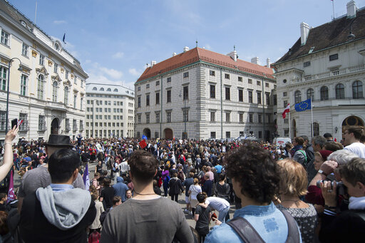 Πολλές χιλιάδες διαδηλωτές πανηγυρίζουν από το μεσημέρι στην Πλατεία Ballhausplatz μπροστά στο Μέγαρο της Καγκελαρίας στο κέντρο της Βιέννης, την παραίτηση του Αυστριακού αντικαγκελάριου και αρχηγού του ακροδεξιού εθνικιστικού Κόμματος των Ελευθέρων Χάιντς-Κρίστιαν Στράχε μετά την αποκάλυψη σκανδάλου πρωτοφανούς πολιτικής συναλλαγής