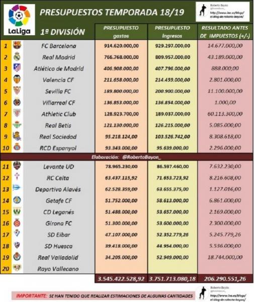 Η εφημερίδα Marca ανέλυσε τα οικονομικά δεδομένα των ομάδων της Ισπανίας και συνέκρινε την τελική βαθμολογία της La Liga με την αντίστοιχη που είχε προκύψει βάσει των... μπάτζετ