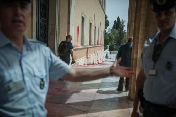 Επίθεση με μπογιές στην Βουλή σήμερα το μεσημέρι.
