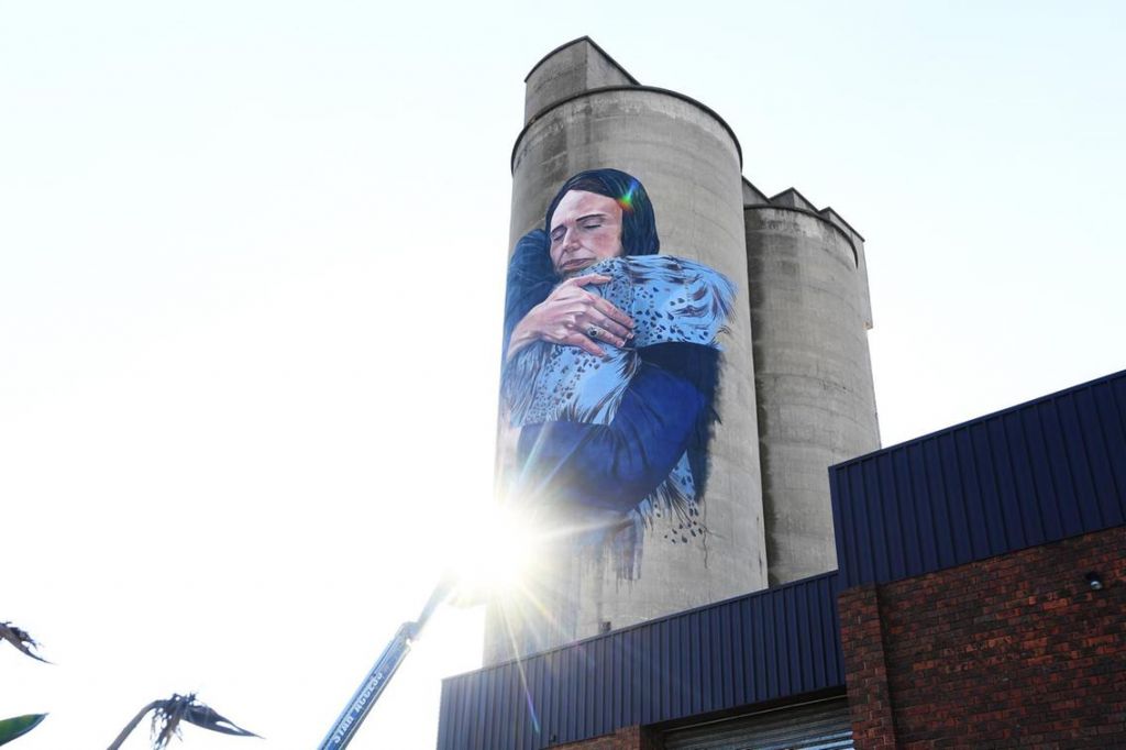 Η πρωθυπουργός της Νέας Ζηλανδίας, Τζασίντα Άρντερν απεικονίζεται να αγκαλιάζει μία μουσουλμάνα γυναίκα μετά την πολύνεκρη τρομοκρατική επίθεση στο Κράιστσερτς σε τοιχογραφία που δημιούργησε η street art καλλιτέχνης Loretta Lizzio.