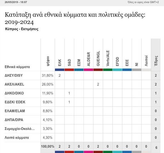 Ο philenews.com παραθέτει την εκτίμηση αποτελέσματος ευρωεκλογών για την Κύπρο και από το Ευρωπαϊκό Κοινοβούλιο: