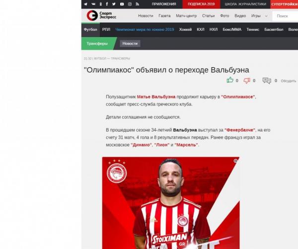 Sport Express: «Ο Ολυμπιακός ανακοίνωσε τη μεταγραφή του Βαλμπουενά»