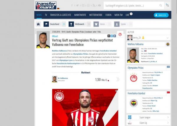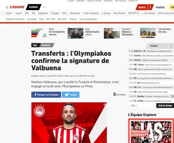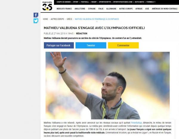 Yahoo Sports: «Ο Ολυμπιακός υπέγραψε τον έμπειρο Γάλλο, Βαλμπουενά»